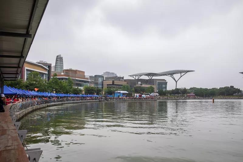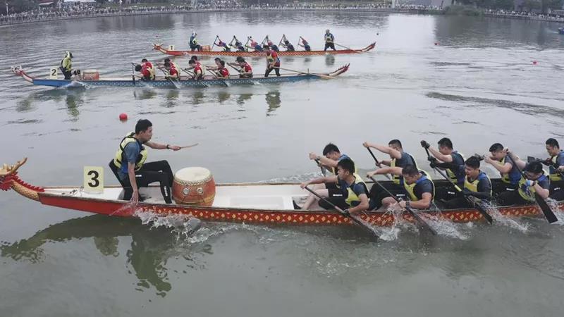 現(xiàn)場(chǎng)觀眾圍湖觀戰(zhàn),吶喊聲、鼓聲、加油聲響成一片
